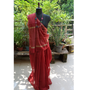 Pattern: Solid brick red with subtle gold zari border